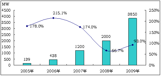 图 1 2005-2009年全球新增光伏装机量和增添率